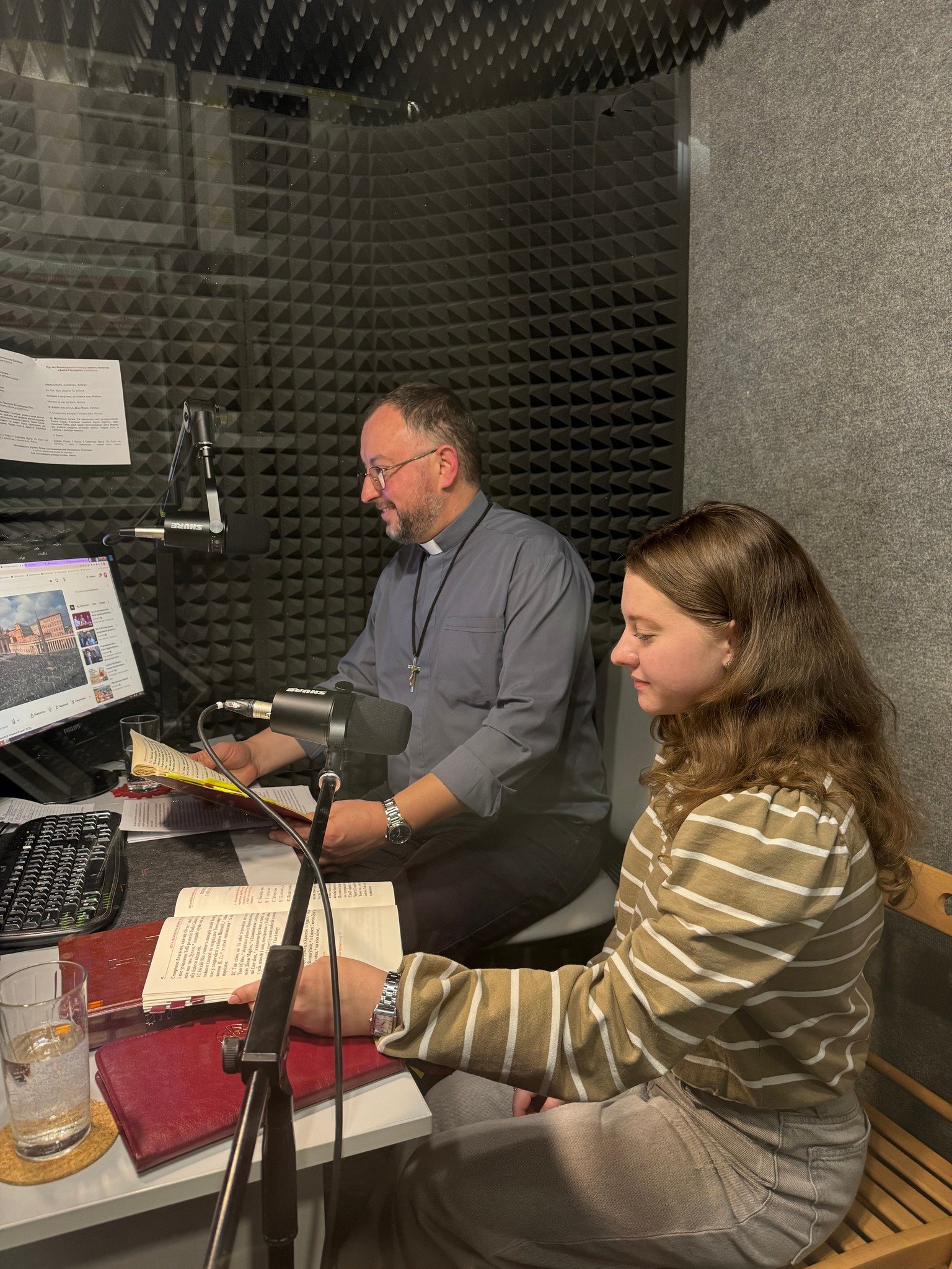 У той час, коли одна частина нашої команди працювала у Львові, інша залишалася в Київській студії, щоб забезпечити недільні трансляції. Отець Андрій Гавліч OМІ разом із пані Іванкою Вовнянко транслювали Святу Месу, яку очолював Святіший Отець Лев XIV з нагоди Ювілею синодальних команд і структур відповідальності у Церкві. За технічне забезпечення всіх трансляцій відповідала пані Олександра Фещенко.