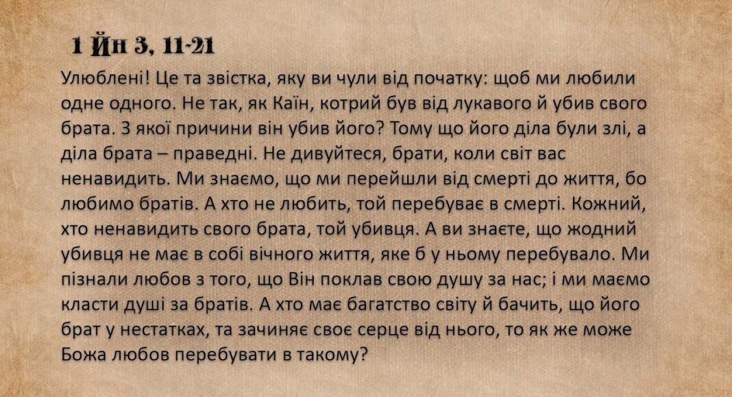додомуВідеоархів5 січня, "Дорога до серця" ВідеоархівДорога до серця 5 січня, “Дорога до серця” “Дорога до серця” 5 січня, 1 Йн 3, 11-21 отець Олександр Халаїм Євангеліє з дня: https://www.youtube.com/watch?v=N3Fag… ДИВИСЬ ТАКОЖ Бачити Бога сьогодні. Проповідь о. Віталія Луковського 18/01/2026 Проповідь під час інавгурації Року Пресвятоого Серця Господа Ісуса 16/01/2026 Ісусе Якщо хочеш… Проповідь о. Андрія Гавліча ОМІ 15/01/2026