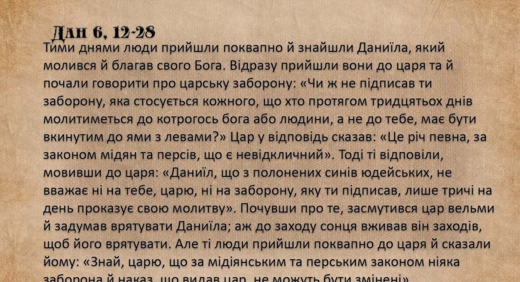 Четвер ХХХІV звичайного тижня, Дан 6, 12-28
