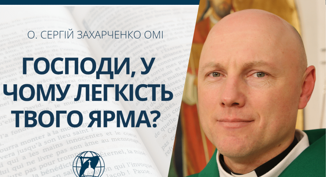 Того часу Ісус, відповідаючи, сказав: «Прийдіть до Мене всі струджені та обтяжені, – і Я дам вам відпочинок! Візьміть Моє ярмо на себе і навчіться від Мене, бо Я лагідний і покірним серцем, – і знайдете відпочинок своїм душам. Адже Моє ярмо любе, і Мій тягар легкий».