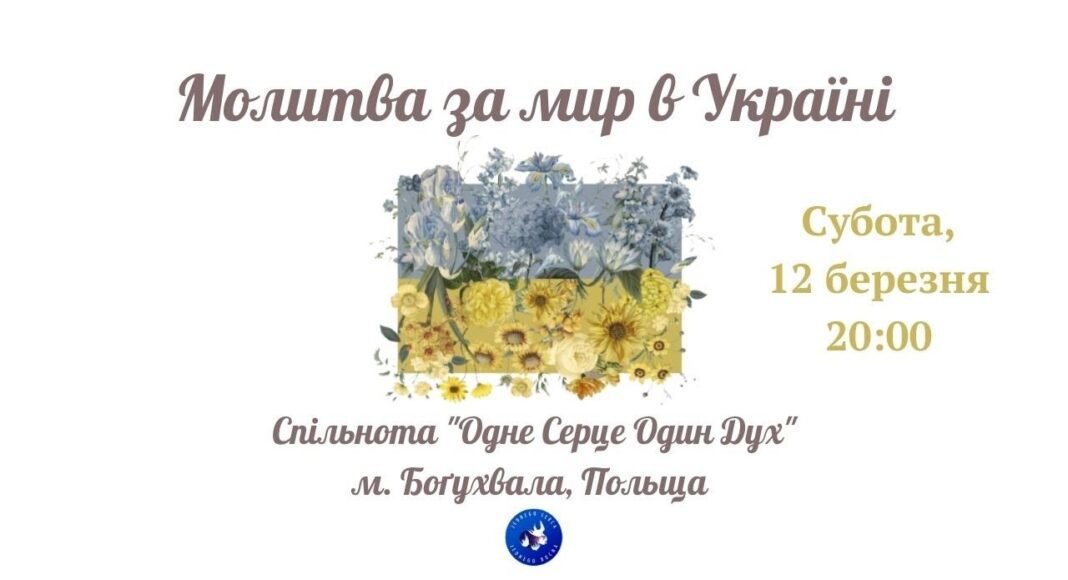 додомуВідеоархівМолитва за мир в Україні. Спільнота "Одне Серце Один Дух", м. Боґухвала,... ВідеоархівПроповіді Молитва за мир в Україні. Спільнота “Одне Серце Один Дух”, м. Боґухвала, Польща, 12.03.2022 ДИВИСЬ ТАКОЖ Нерозуміння Петра. Проповідь о. Сергія Захарченка ОМІ. 31/03/2026 Вже все готово. Проповідь о. Лукаша Орловського ОМІ 30/03/2026 Увійди в святеє святих. Проповідь о. Давида Омєцінського ОМІ. 29/03/2026