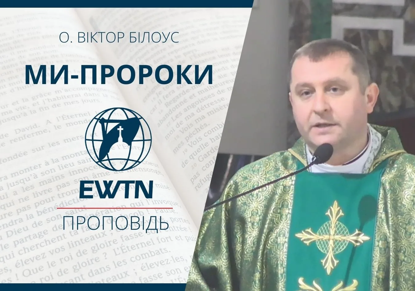 додомуВідеоархівМи- пророки. Проповідь о. Віктора Білоуса ВідеоархівПроповіді Ми- пророки. Проповідь о. Віктора Білоуса ДИВИСЬ ТАКОЖ Бережи Слово Боже. Проповідь о. Андрія Гавліча ОМІ 26/03/2026 До віри через Марію. Проповідь о. Лукаша Орловського ОМІ 25/03/2026 Катехеза Папи Лева XIV: “Церква Ієрархічна” 25/03/2026