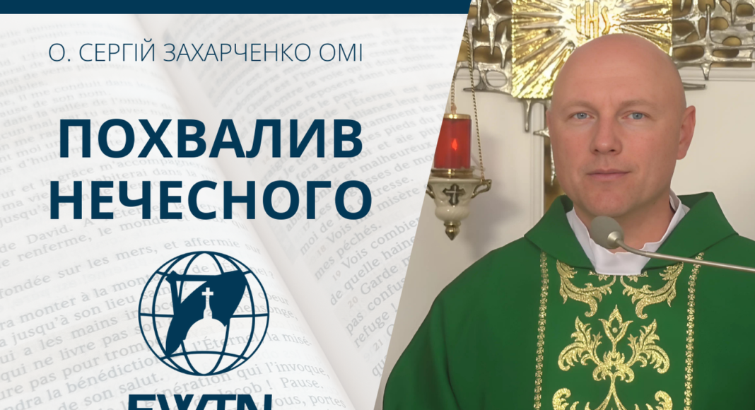 Того часу Ісус сказав до своїх учнів: «Був один багатий чоловік, котрий мав управителя, якого звинуватили, ні бито він розтрачує його майно. Покликавши його, сказав йому: “Що це я чую про тебе? Дай звіт за своє управління, бо більше не зможеш розпоряджатися”. Став міркувати собі управитель: “Що ж мені робити, адже мій пан позбавляє мене управління? Копати не маю сили, жебракувати соромлюся. Знаю, що зроблю, щоб, коли буду усунений від управління, прийняли мене до своїх домів”. І, покликавши кожного з боржників свого пана, запитав першого: “Скільки винен ти моєму панові?” Той відповів: “Сто мірок олії”. І сказав він йому: “Візьми свою розписку, швидко сідай і напиши: п’ятдесят”. Потім запитав другого: “А ти скільки винен?” Той відказав: “Сто мі рок пшениці”. Каже йому: “Візьми свою розписку й напиши: вісімдесят”. І похвалив пан нечесного управителя, бо той розумно вчинив. Адже сини цього віку розумніші від синів світла у своєму поколінні».
