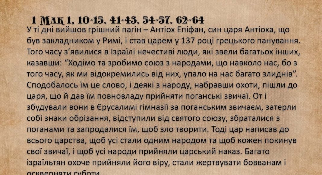 Понеділок ХХХІІІ звичайного тижня,1 Мак 1,10-15.41-43.54-57.62-64.