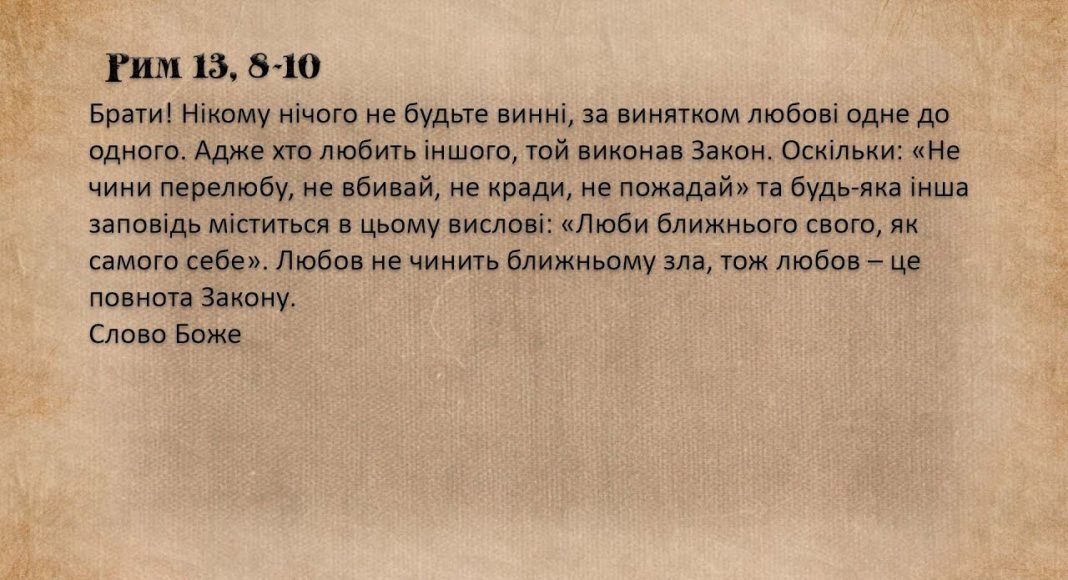 Середа ХХXІ звичайного тижня, Рим 13, 8-10
